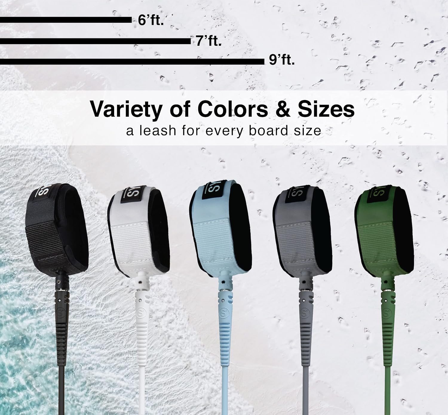 SYMPL Premium Surfboard Leash 6, 7, 9 ft Surf Leash Leg Rope for Surf, Skim。兩件