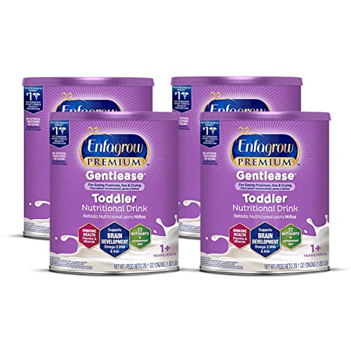Enfagrow Premium Gentlease Toddler Nutritional Drink, Omega-3 DHA for Brain Support, Prebiotics & Vitamins for Immune Health, Non-GMO, 29.1 Oz Can, Pack of 4, Total 116.4 Oz