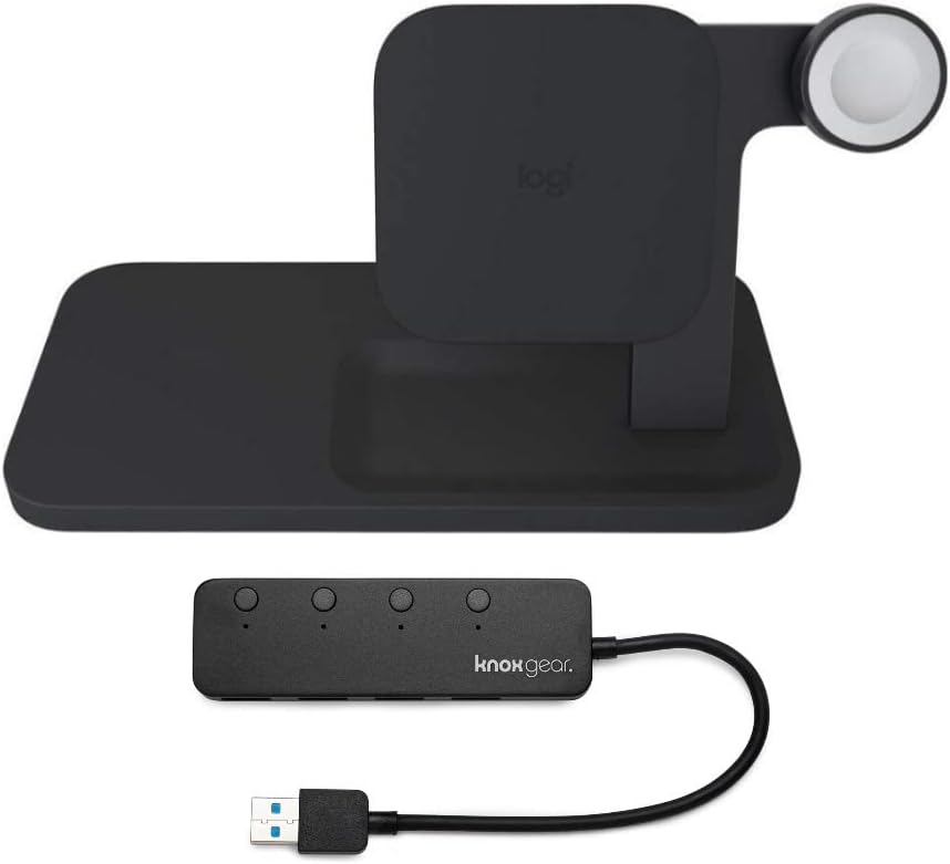 亞馬遜購入,Logitech Powered 3-in-1 Qi Wireless Charging Dock (Graphite) with Knox Gear 4-Port USB Hub Bundle (2 Items)
