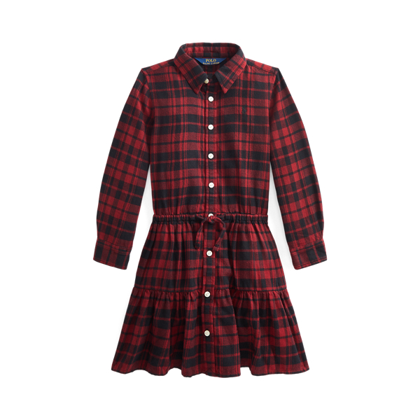 Plaid Cotton Twill Shirtdress,4T,紅色