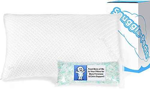 Snuggle-Pedic Adjustable Shredded Memory Foam Pillow with Cooling Bamboo Cover – GreenGuard Gold Certified, Made in USA – Soft or Firm Luxury Support for Side, Back or Stomach Sleepers – King Size