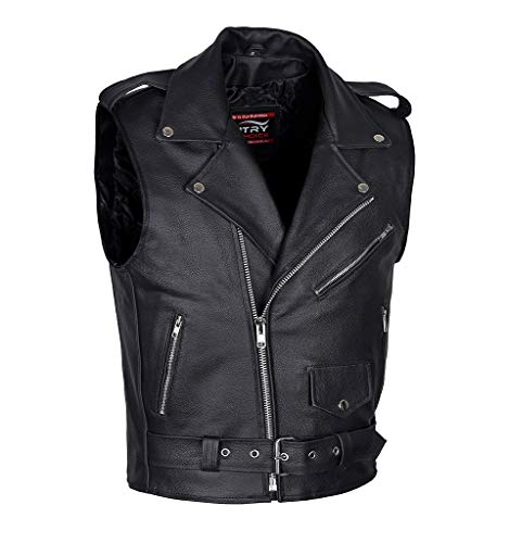 【備貨時間較長】Brando Style Leather Vest Black Sleeveless Jacket heavy duty Biker’s Vest (Small)