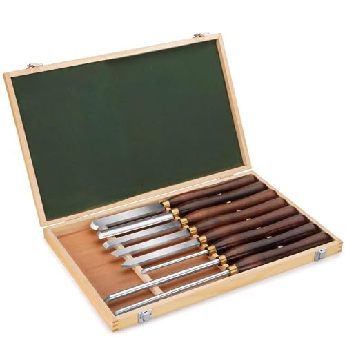 Urbansential Woodworking 8-Piece HSS Wood Turning Tools Lathe Chisel Set, with Wooden Box (Pro Size 002)