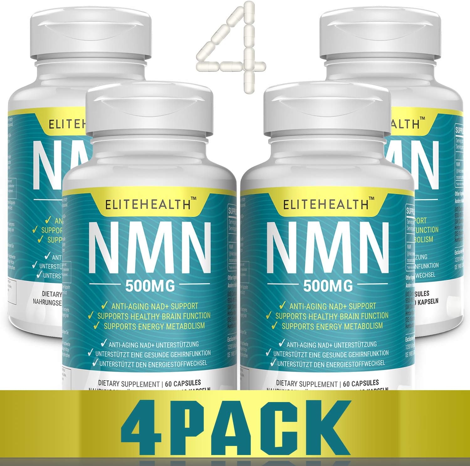 NMN Nicotinamide Mononucleotide Supplement, 500mg, Stabilized Form, Naturally Boost NAD+ Levels for DNA Repair & Energy (4 Bottles(240 Capsules))
