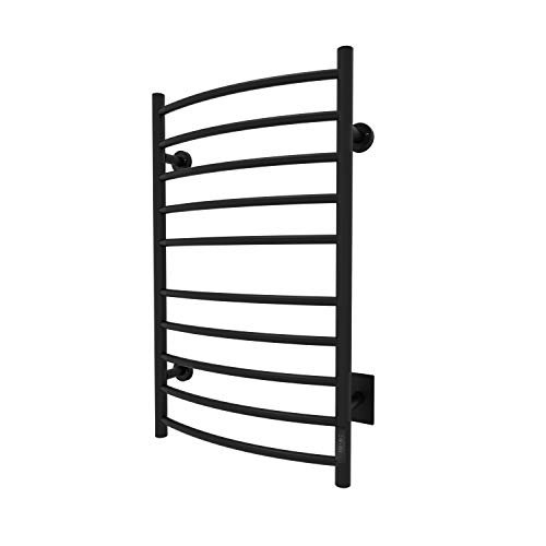 Towel Warmer | Built-in Timer with Led Indicators | 3 Timer Modes: ON/Off, 2 H, 4 H | Wall Mounted | 10 Curved Bars | Matt Black Power Coated (Carbon Steel)