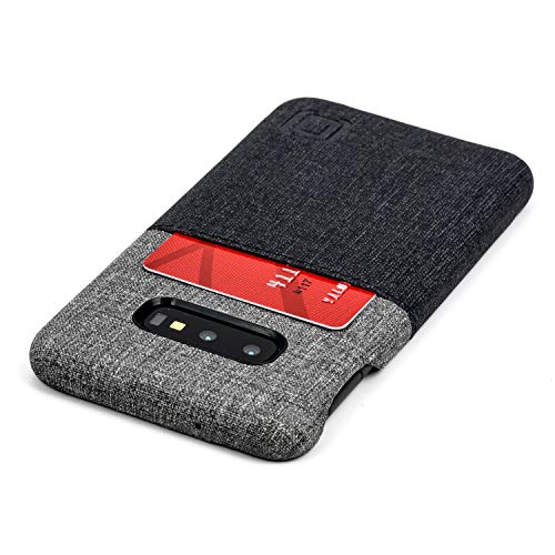 Dockem Luxe N1 Wallet Case for Samsung Galaxy S10e: Ultra Slim One Slot Card Case, Synthetic Leather with UltraGrip Twill Canvas Styling [Black & Grey]