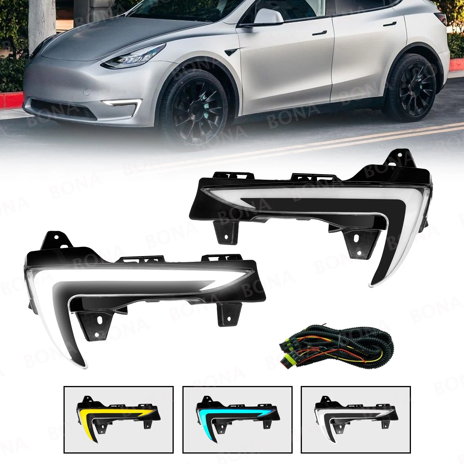 Pair For 2020-2023 Tesla Model Y LED Fog Lights Front Bumper Lamps with DRL