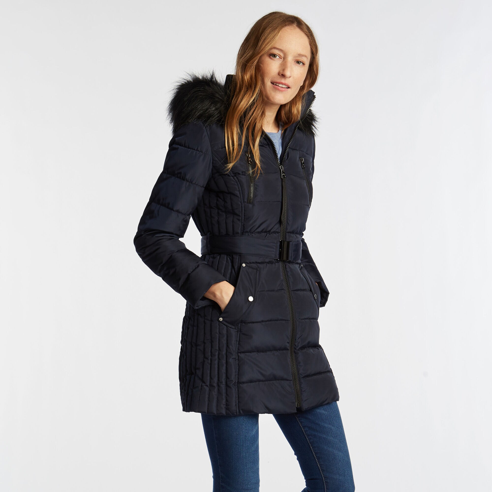 NAUTICA WOMEN'S QUILTED BELTED COAT