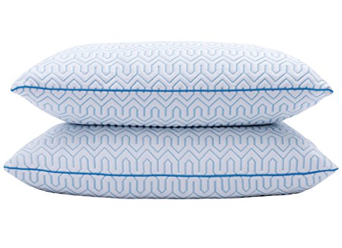 puredown Natural White Goose Down Feather Cool-Down Pillow with Cooling Ice Silk Cover,Set of 2, Queen