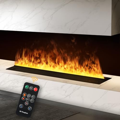 MEXHOM Electric Fireplace 3D Water Vapor Fireplace Recessed Realistic Atomized Flame, with Water and Remote Control Electric Steam Fireplace Stove (Size:L70.87x W7.87x H8.27 in)