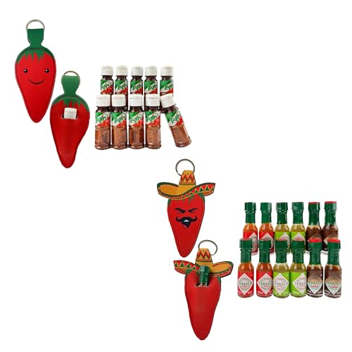 10 Mini Tajin Classic Seasoning Compact 2.5 Inch w/Red Pepper Keychain Holder & 12x3.7ML Mini Assorted Tabasco Hot Sauce 4 Red Tabasco, 4 Chipotle Tabasco, 4 Green Pepper, 1 Mini Hot Sauce Keychain