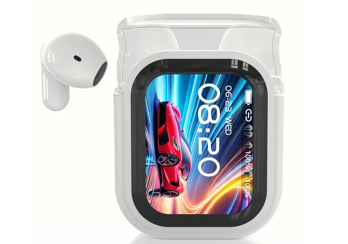 WHITE HTC NE20 Bluetooth 6.0 Wireless Earbuds AI Translator LCD Touch Headphones
