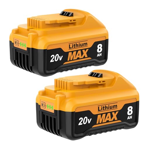 JUNWOOD 2Pack Upgraded 8.0Ah Replacement for Dewalt 20V Battery XR Max Li-ion Compatible with DCB205 DCB206 DCB200 DCB201 DCB204 DCB207 DCD/DCF/DCG Series