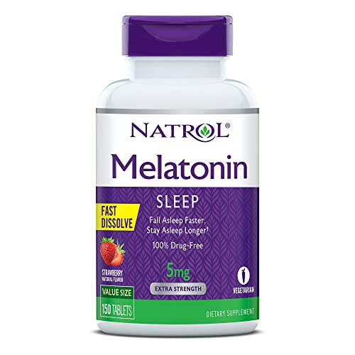 Natrol Melatonin Fast Dissolve Tablets, Helps You Fall Asleep Faster, Stay Asleep Longer, Easy to Take, Dissolves in Mouth, Strengthen Immune System, Strawberry Flavor, 5mg, 150 Count