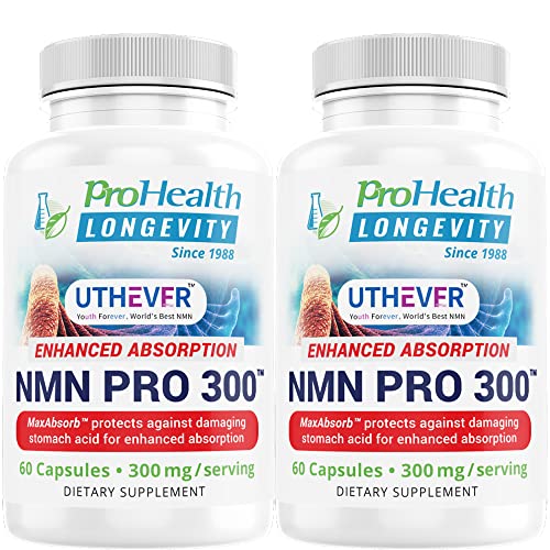 NMN Pro 300 (2-Pack) Enhanced Absorption - Uthever Brand - Ultra-Pure, Stabilized, Pharmaceutical Grade NMN (60 Capsules per Bottle, 300 mg per 2 Capsule Serving) - ProHealth Longevity